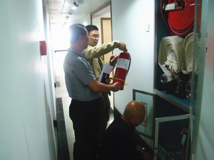 公司大樓開展消防安全突擊檢查 4月17日下午,公司安保部對大樓進行消防安全突擊檢查。檢查范圍不僅包括大樓消控室、微型消防站、地下車庫等區域,還有公司股權部和旅游公司營業部以及各樓層滅火器箱所在地。